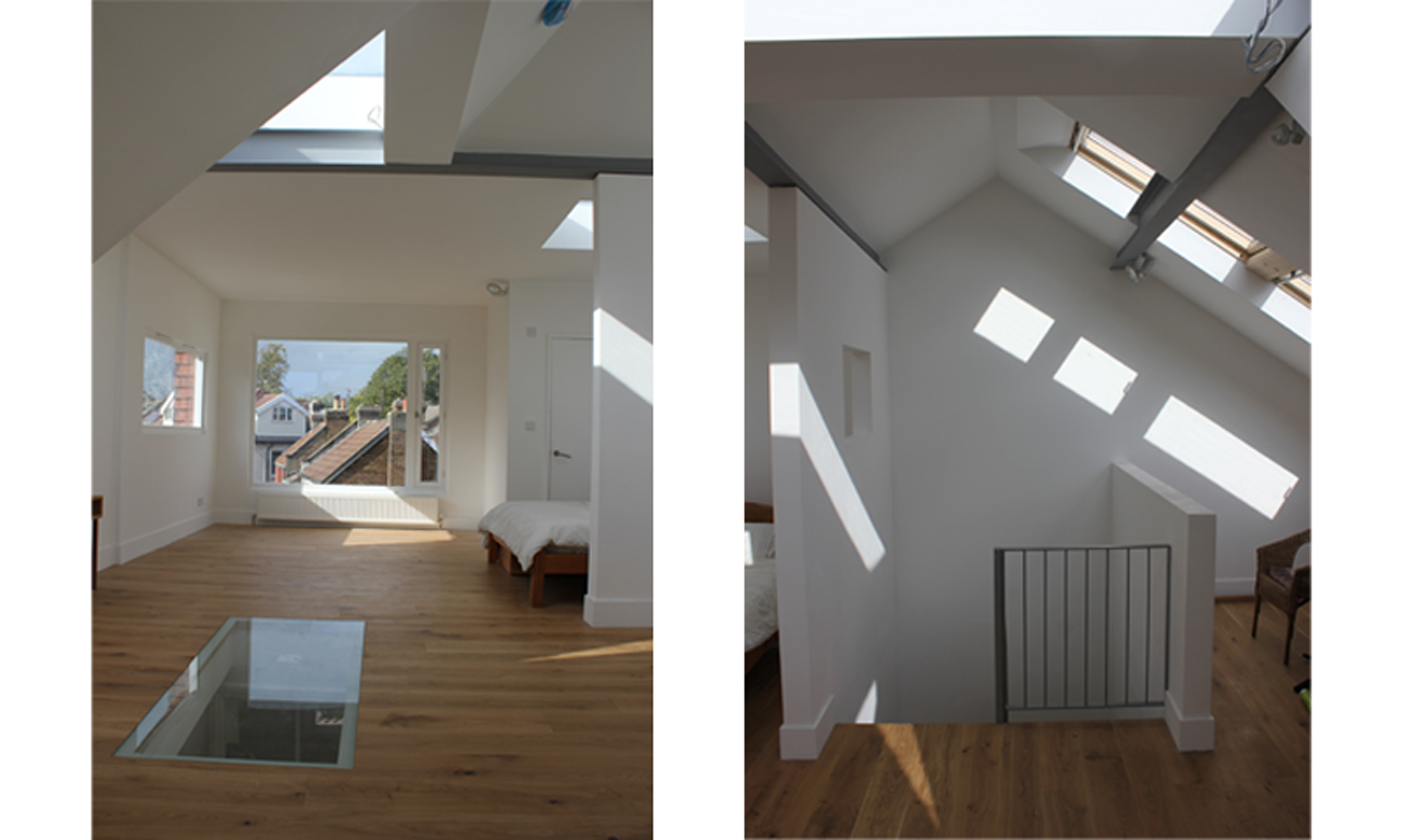This project was for a client for an extension to and remodelling of house, Bristol that I had worked for in London. He had a similar situation in Bristol – a Victorian house that was too dark and pokey for his liking and an unused attic. In this case planning permission was not required as the extension was done within permitted development. In fact the size and shape of the extension were dictated by the guidelines within permitted development – pushing all dimensions to the limit. That meant we could wrap the attic extension around the side of the hip roof, considerably enlarging the new floor area.