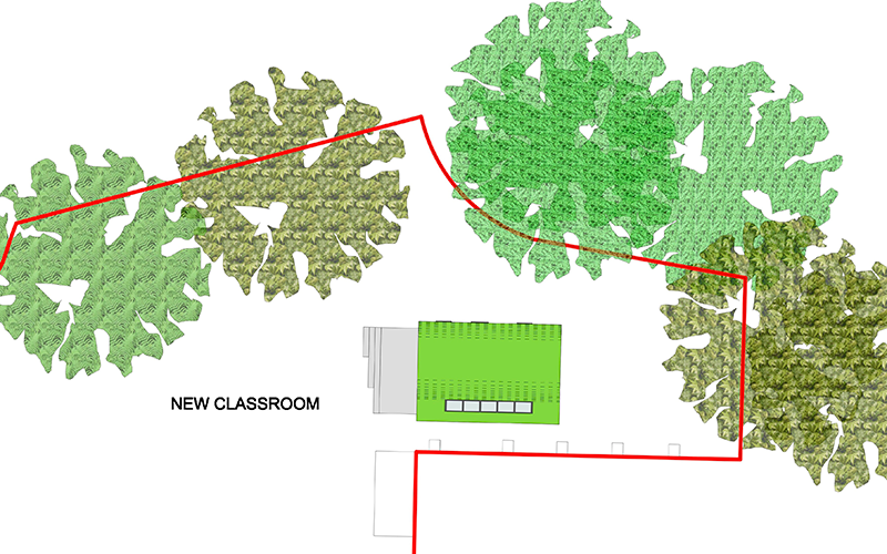 In each case we proposed a detached building – a playful take on a timber cabin – located away from the main nursery in a wooded part of the garden. Both have been designed to have a temporary feel and can easily be moved. Both are raised off the ground, using pile foundations so as not to disturb the tree roots, and each has a south-facing deck.